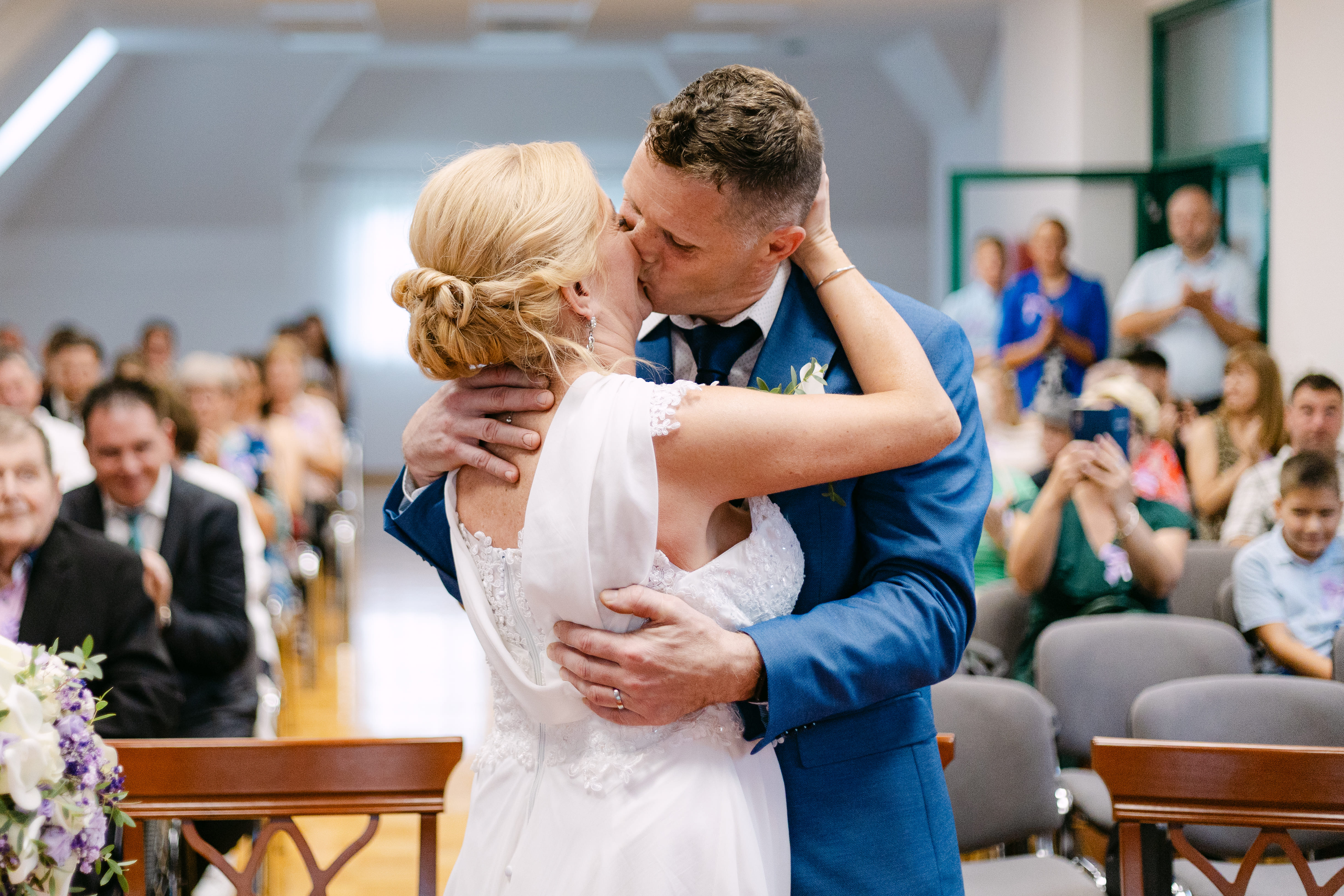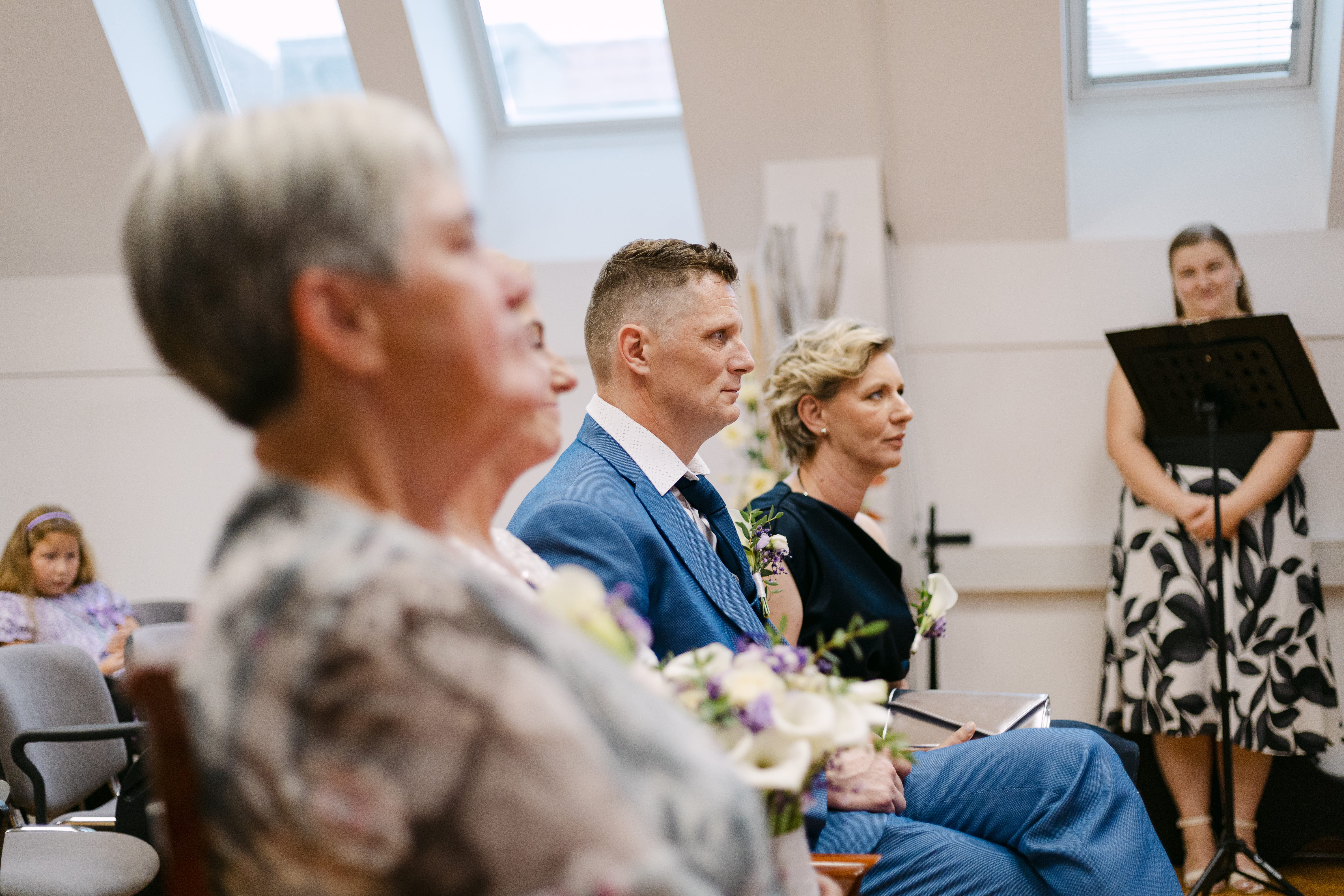 Civilni obred je potekal na Upravni enoti Novo mesto, ob spremljavi glasbe in nasmehov. Po obredu so svatje mladoporočenca posuli s cvetjem – preprost, a ganljiv trenutek, poln veselja in čustev.