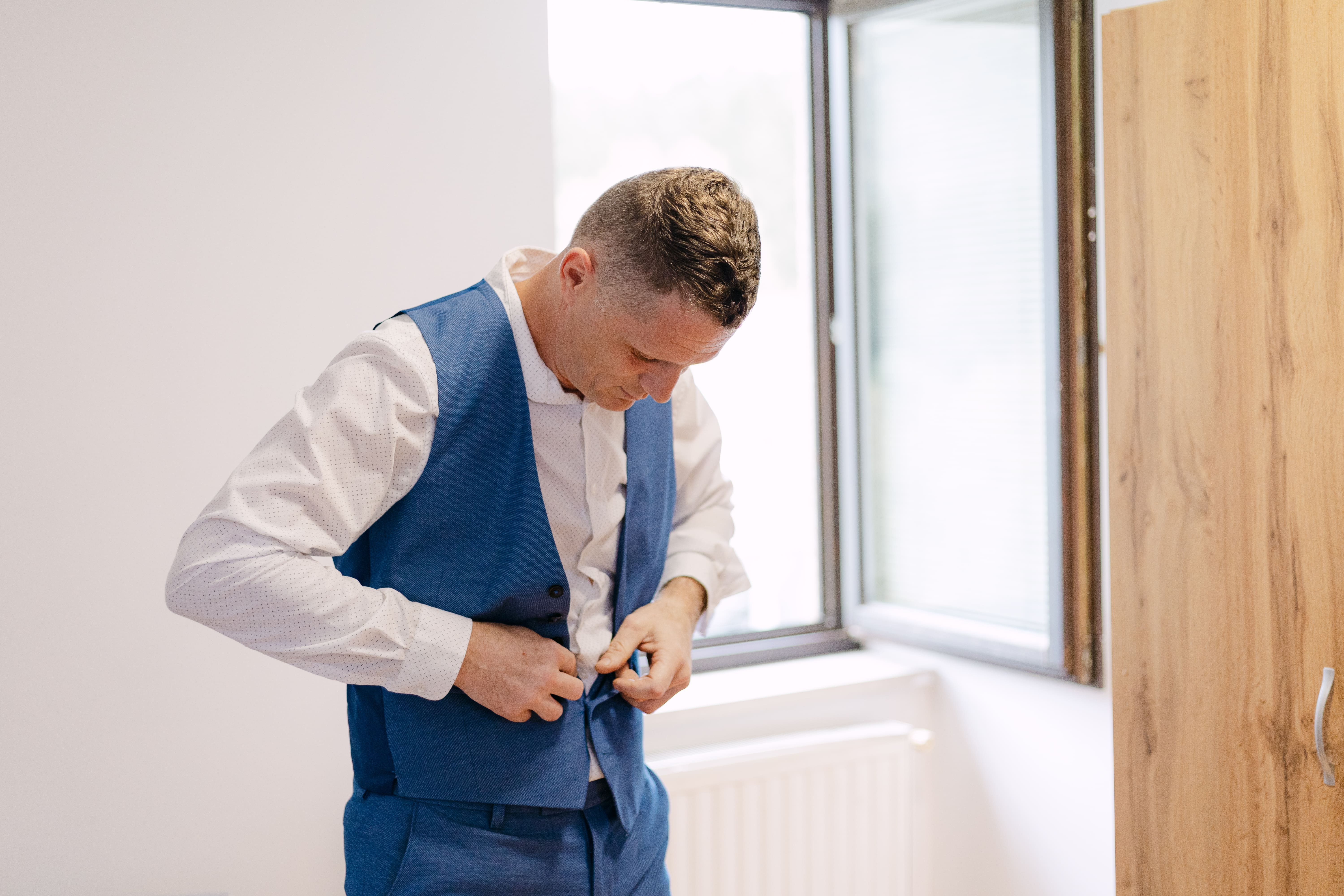 Jasmina in Tomaž sta svojo ljubezensko zgodbo okronala 30. avgusta 2025. Dan se je začel sproščeno – medtem ko so se svatje zbirali pri Tomažu doma, je nevesta zaključila priprave v hiši, kjer sem ujel nekaj čudovitih trenutkov in detajlov, od poročnih prstanov do njenih elegantnih čevljev.